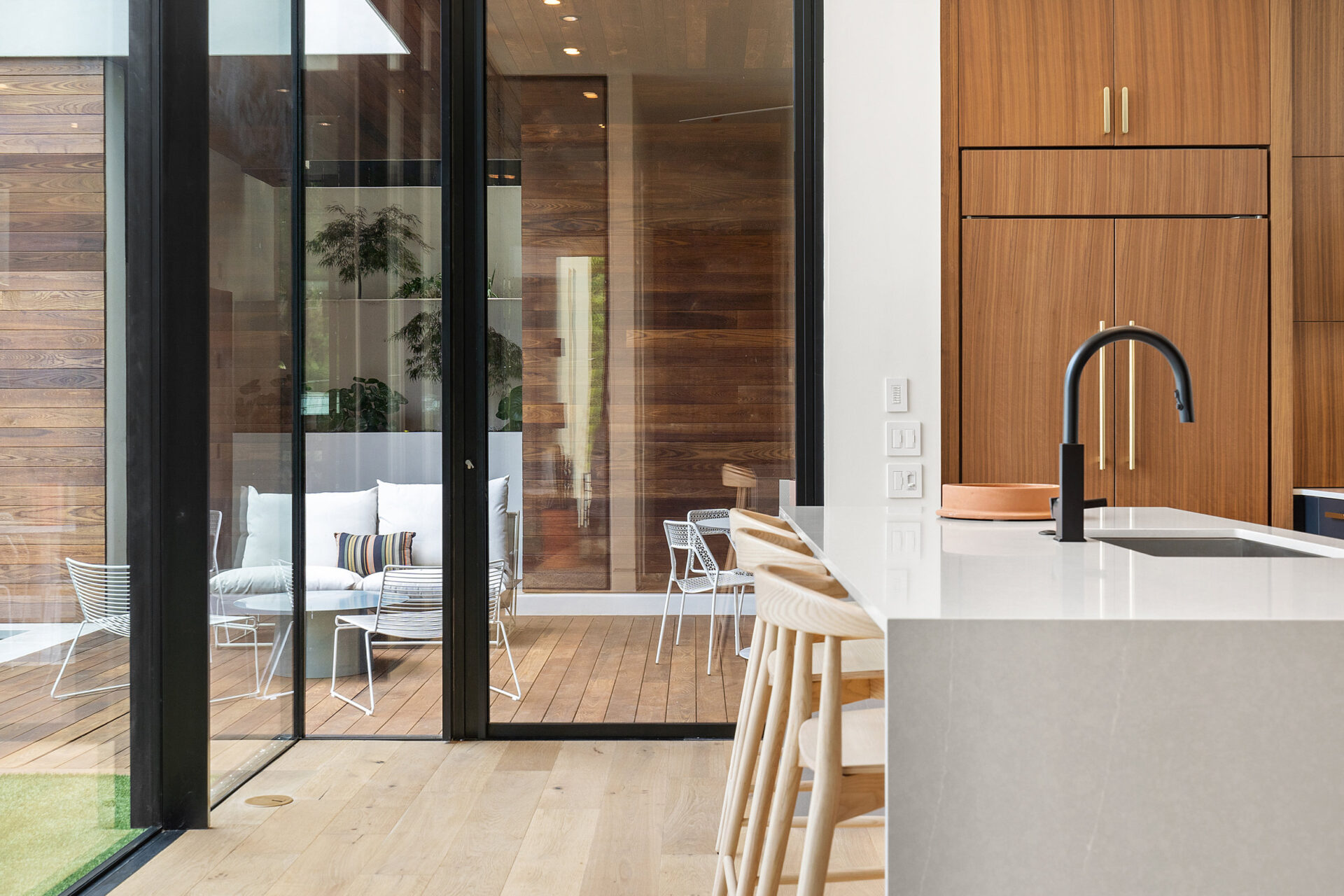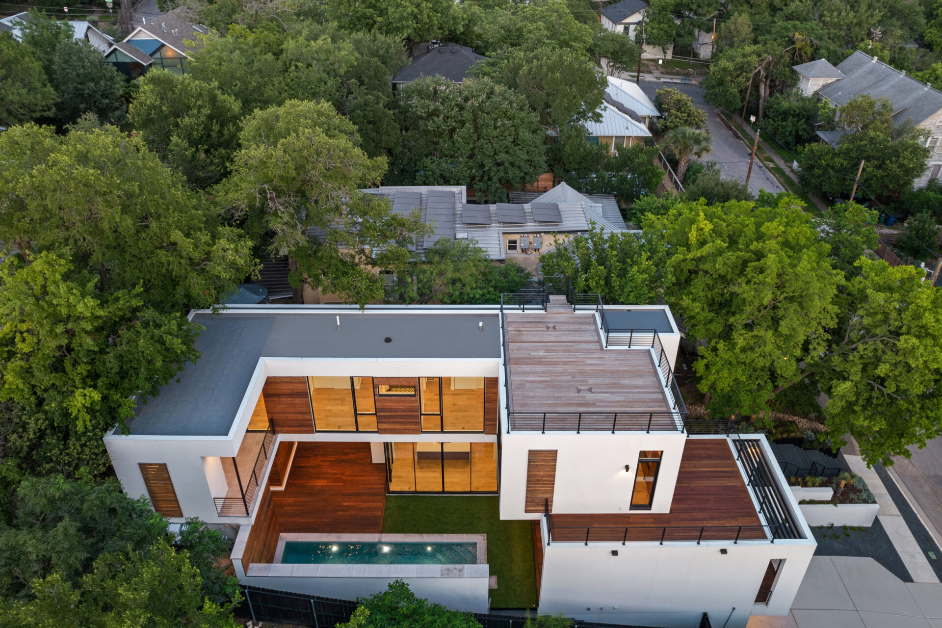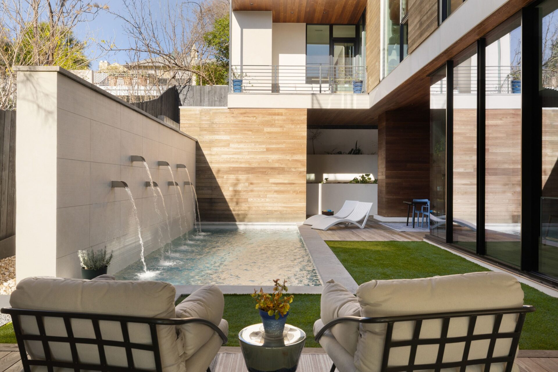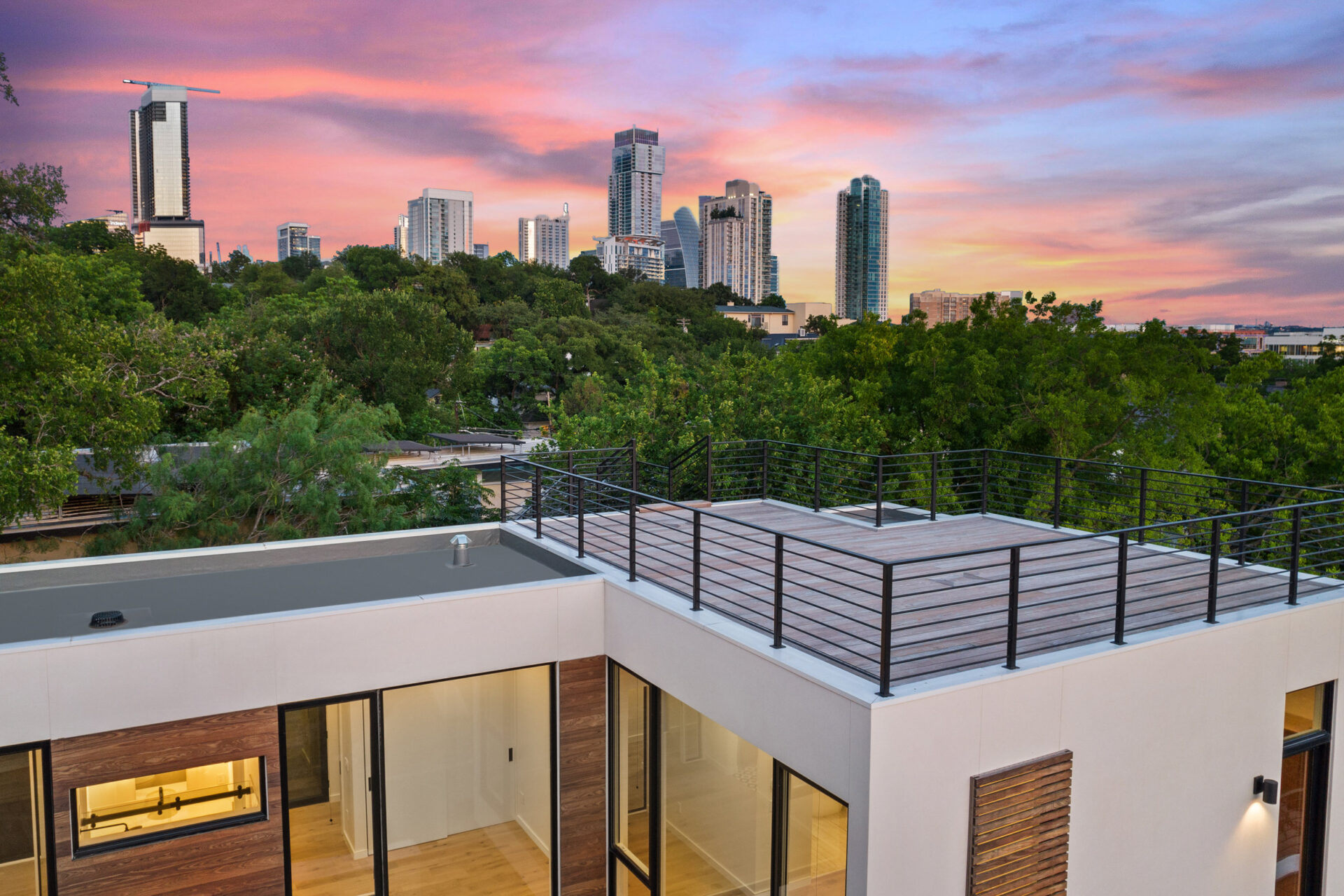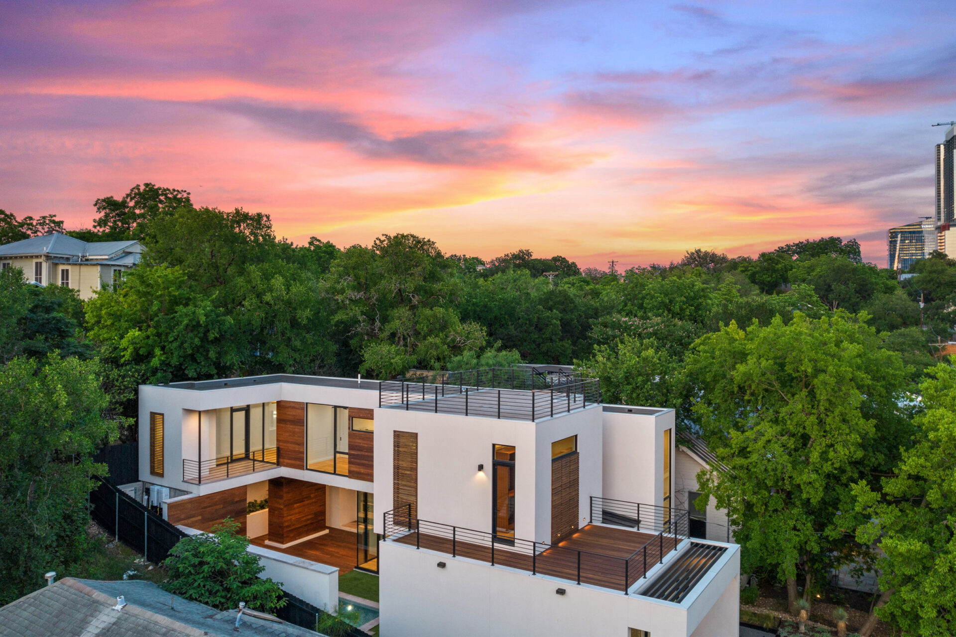 Welcome to your dream home! A stunning home located in the heart of Downtown Austin. With 4 bedrooms and 5 bathrooms (3 full, 2 half), spanning 3,410 square feet, this home offers plenty of space for comfortable yet luxurious living. The scenic views add a touch of natural beauty, and the glass walls bring in ample natural light while providing a contemporary aesthetic. The multi-level design adds architectural interest and allows for a dynamic layout. The xeriscaped yard, featuring native plants, not only enhances the visual appeal of this unique property but also offers low- maintenance landscaping that conserves water. The rooms overlooking a private courtyard with a pool and waterfeature create a serene oasis right at home. A great feature for relaxation and entertainment. Ceiling fans and recessed lighting throughout the house ensure both comfort and stylish illumination. The attached garage provides convenience and easy secured access to your vehicle. The walk-in showers in the bathrooms add a touch of luxury, while the wood flooring and tile throughout the house create an elegant and durable foundation. Equipped with stainless steel appliances. A high- quality kitchen that combines functionality and a sleek aesthetic. This home is designed with entertainment in mind, making it perfect for hosting large gatherings. The exterior lounge offers a great space for outdoor relaxation and socializing. Additionally, the rooftop provides an elevated area where you can enjoy breathtaking panoramic views of the city skyline. This will quickly become your private vantage point, providing a versatile space that can be customized to meet your preferences and needs, whether it’s for entertaining guests, enjoying solitude, or simply soaking in the beautiful surroundings. Where upscale meets contemporary.