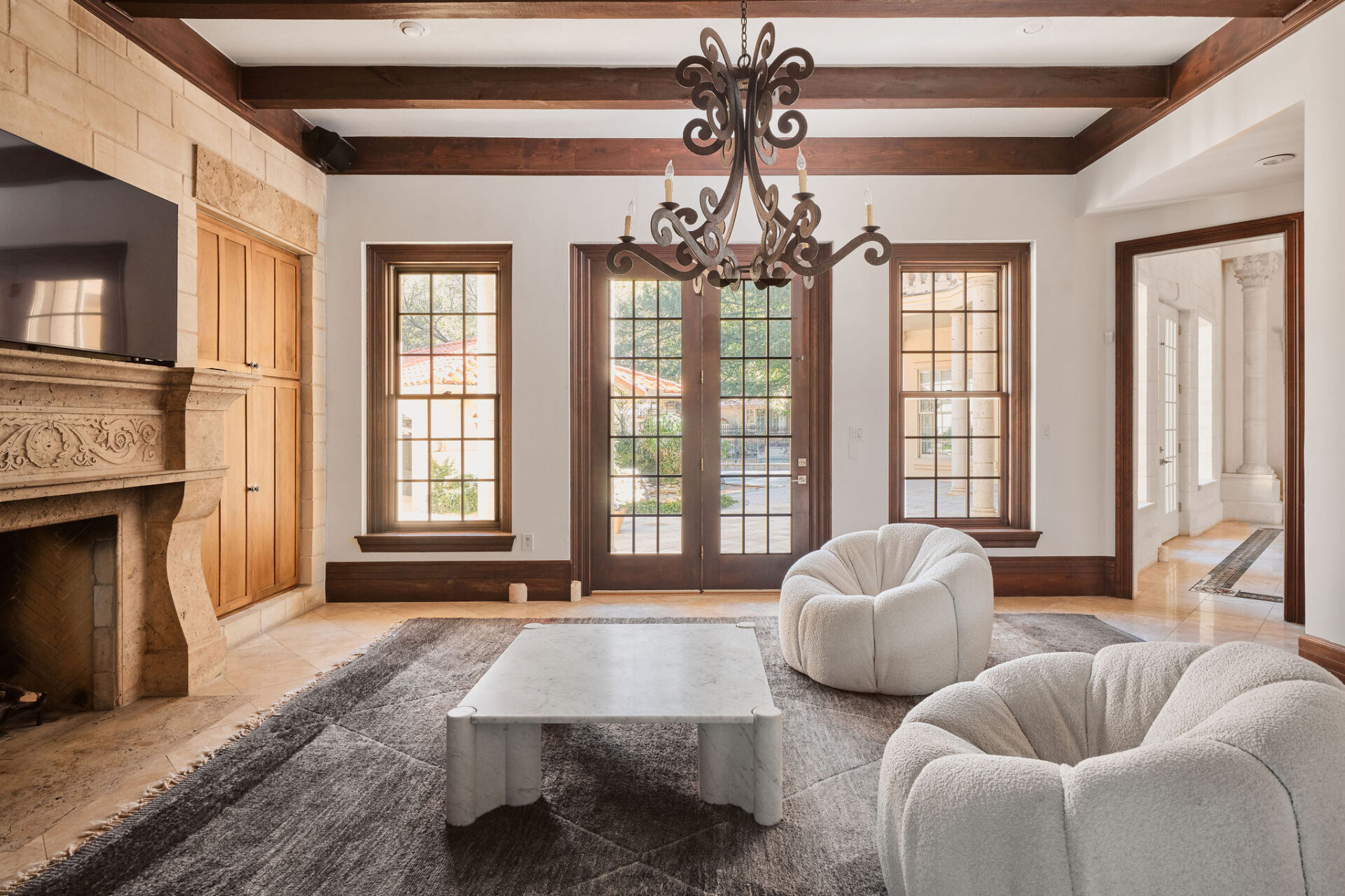 | Value on Lake Austin. 4511 Island Cove is a remarkable waterfront estate set on over half an acre within The Island, one of Austin’s most coveted gated communities. An exquisite collaboration between Impact Design and Corias Homes, the residence features 5 bedrooms, 5 full bathrooms, and 1 half bath. A tranquil fountain welcomes you upon arrival, setting the tone for the Italian-inspired elegance found throughout the home. Ornate columns, graceful archways, and dramatic chandeliers create a sense of timeless sophistication. As you enter the home’s grand foyer you are welcomed by an esteemed double-height study adorned with rich wood finishes. The warm kitchen showcases wood-beamed ceilings, high-end stainless steel appliances, and a functional layout that opens to the main living area and dining room. Wine storage adds to the home’s entertaining appeal, while ample terraces and covered patios extend the living experience outdoors. The expansive primary suite serves as a private escape, featuring a double-sided fireplace, direct access to the backyard oasis, and a massive, spa-like bathroom. Outdoors, the serene grounds unfold toward the water, offering peaceful covered patios and multiple spaces to relax or entertain. A private hydraulic boat slip provides effortless access to Lake Austin living. Residents enjoy privacy, security, and a premier waterfront lifestyle just moments from downtown Austin. This exceptional property blends timeless architecture, thoughtful craftsmanship, and an unparalleled location to create a truly special retreat on the water. Tax and assessed values are estimates for illustration purposes only. All figures should be independently verified. |